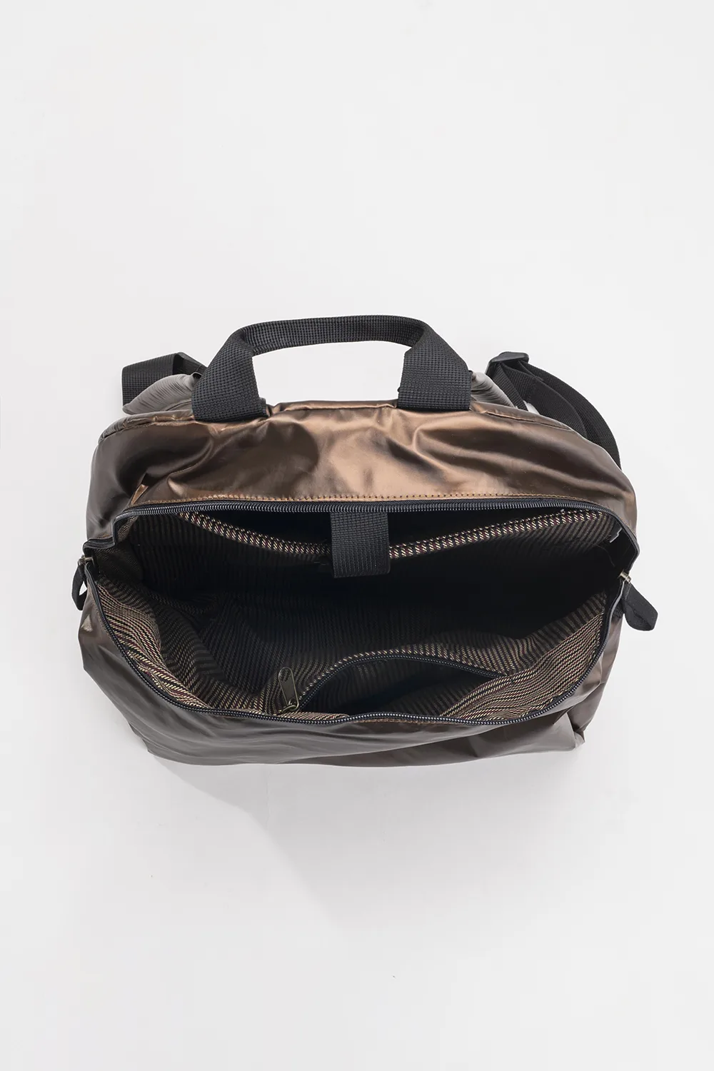 The bag opens and closes with dual zipper heads, allowing smooth and full access to the interior.