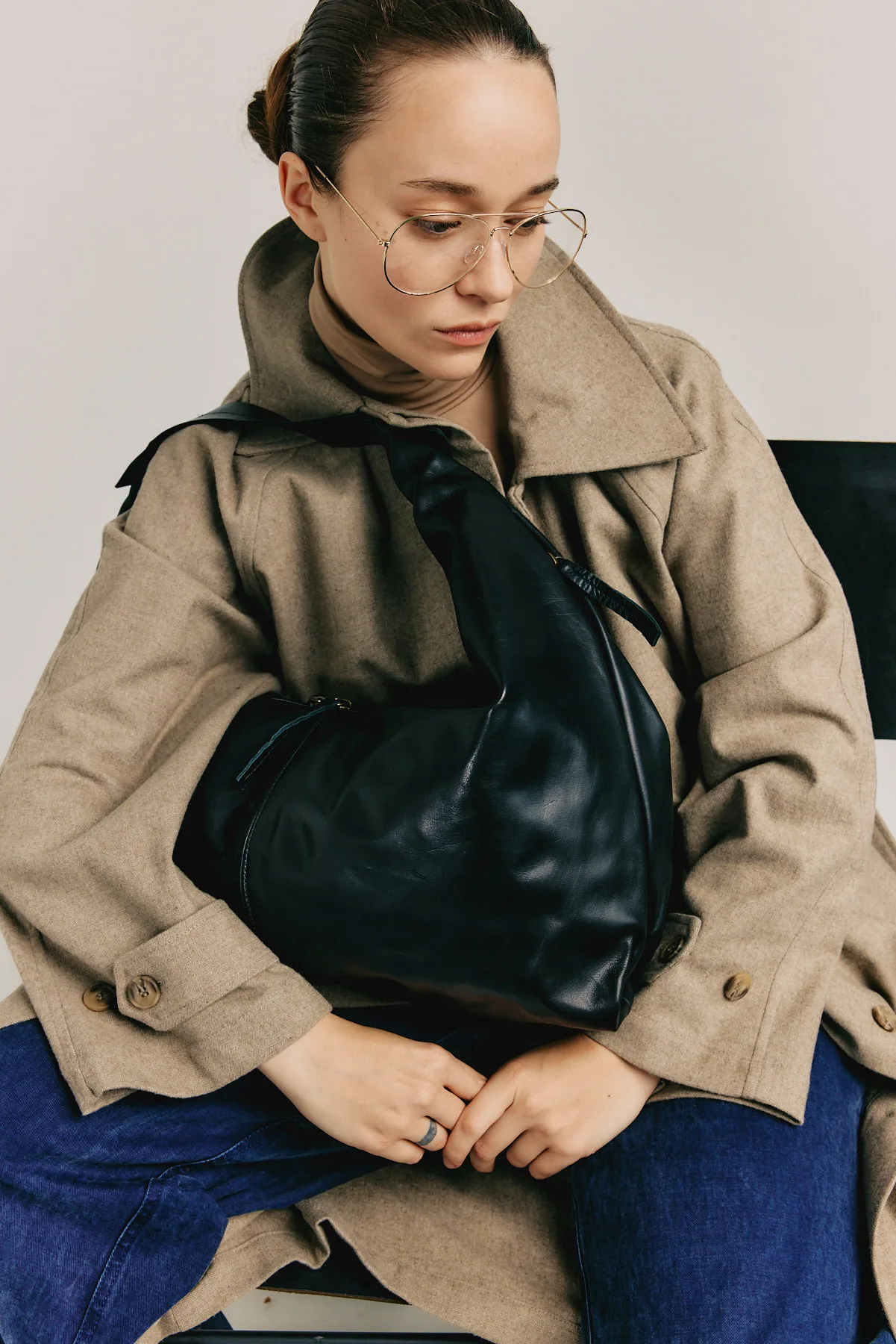 The Unique Bag is made of soft leather, combining a luxurious and casual look.The bag features a shoulder strap, a main compartment with a zipper closure that includes an open pocket and an additional zippered pocket.For your convenience, there’s a hidden zippered pocket on the outer side of the bag for easy access to your mobile phone, keys, tissues, glasses, cards, and more.Dimensions: Width – 37 cm / Height – 25 cm / Depth – 15 cmPlease note, there is no guarantee regarding the color and texture of the bag’s lining, as it may vary depending on the collection.