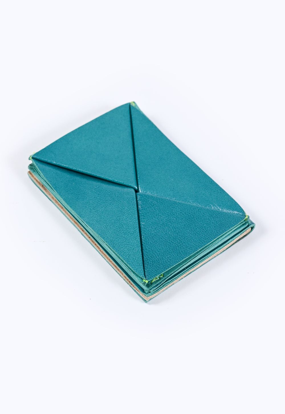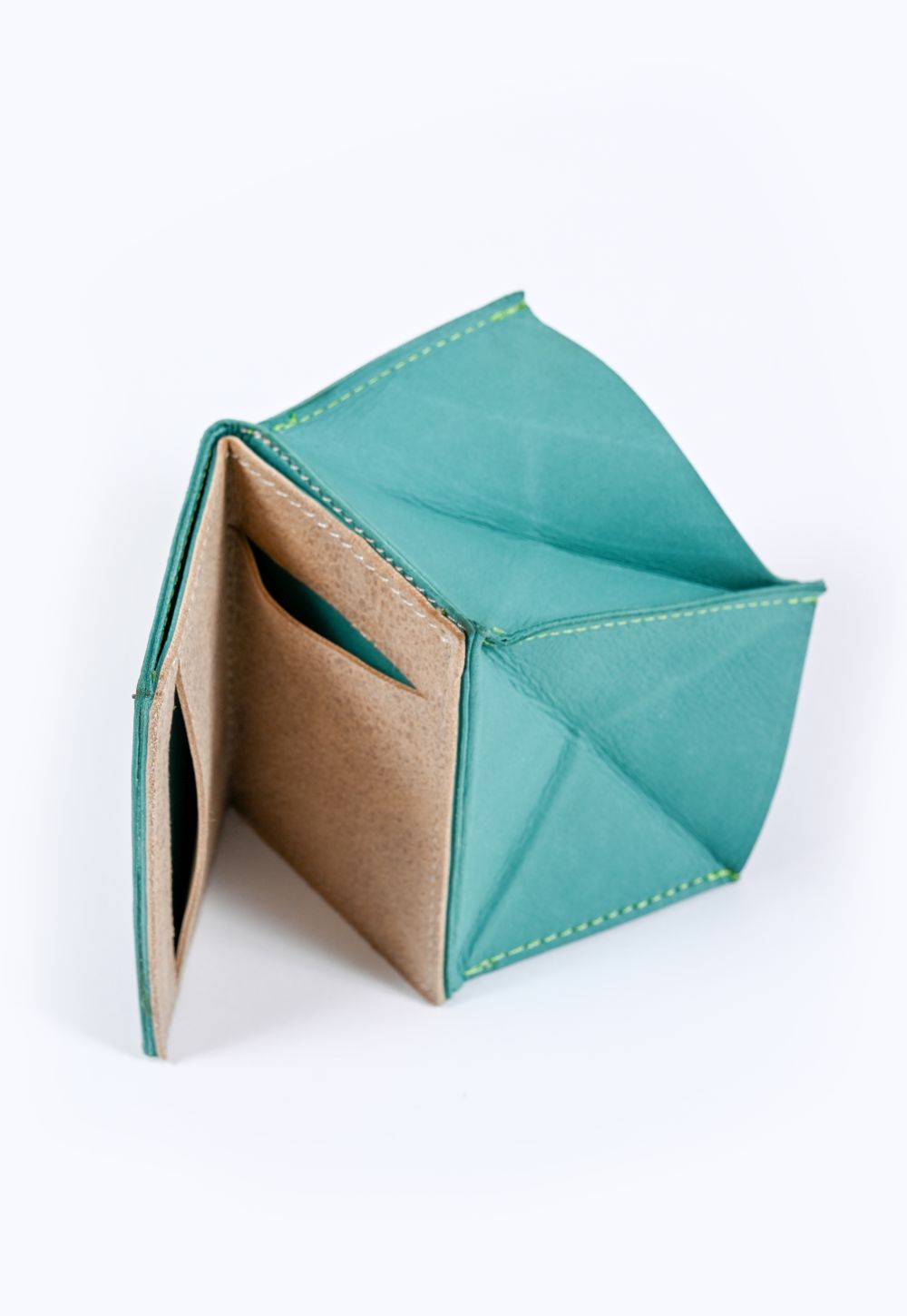 What’s Green on the outside and Purple on the inside?   The design of this unique compact leather wallet is inspired by the paper-folding art of “origami”. Suitable for daily use, easily fits gents’ back pocket or ladies tiny clutch, purse or evening bag. On the outside, unique and secure patent folding pocket for coins on one side and a credit card compartment on the other. Its inside reveals a bank notes pocket and two additional pockets for credit cards.   Dimensions: 3.7×2.5×0.59  inch 9.5×6.5×1.5   cm
