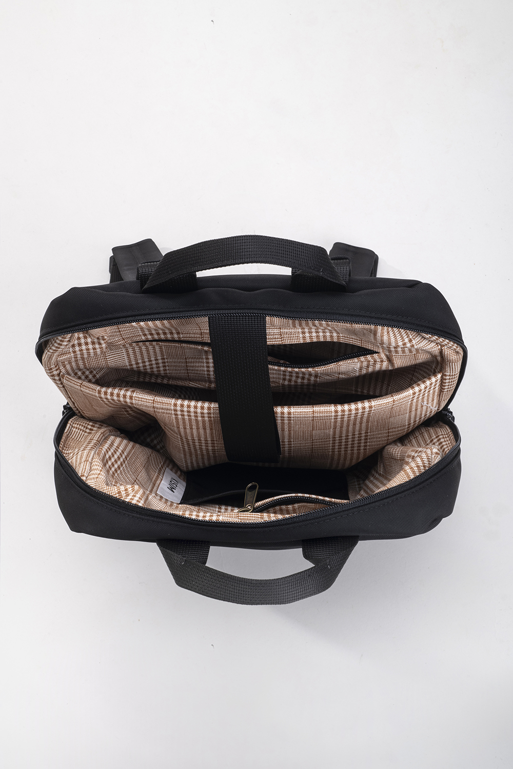תיק גב נוח בעל שתי רצועות מתכווננות לנשיאה על הגב ושתי ידיות קצרות לאחיזה ביד. * תא ראשי גדול הנסגר ברוכסן וכולל שני כיסים גדולים הנסגרים ברוכסן אף הם. * תא חיצוני גדול בגב התיק עם סגירת מגנט מתאים למפתחות, וטלפון נייד. * בדים: מעורב, כותנה/גומי/pvc – עמיד במיםהתיק מתאים למחשב גודל 14 אינץ ומטה, מידות- גובה 37 ס"מ רוחב: 30 ס"מ עומק: 8 ס"מ100% טבעוני.אין התחייבות על הצבע והטקסטורה בבטנה של התיק והיא עשויה להשתנות בהתאם לקולקציה.