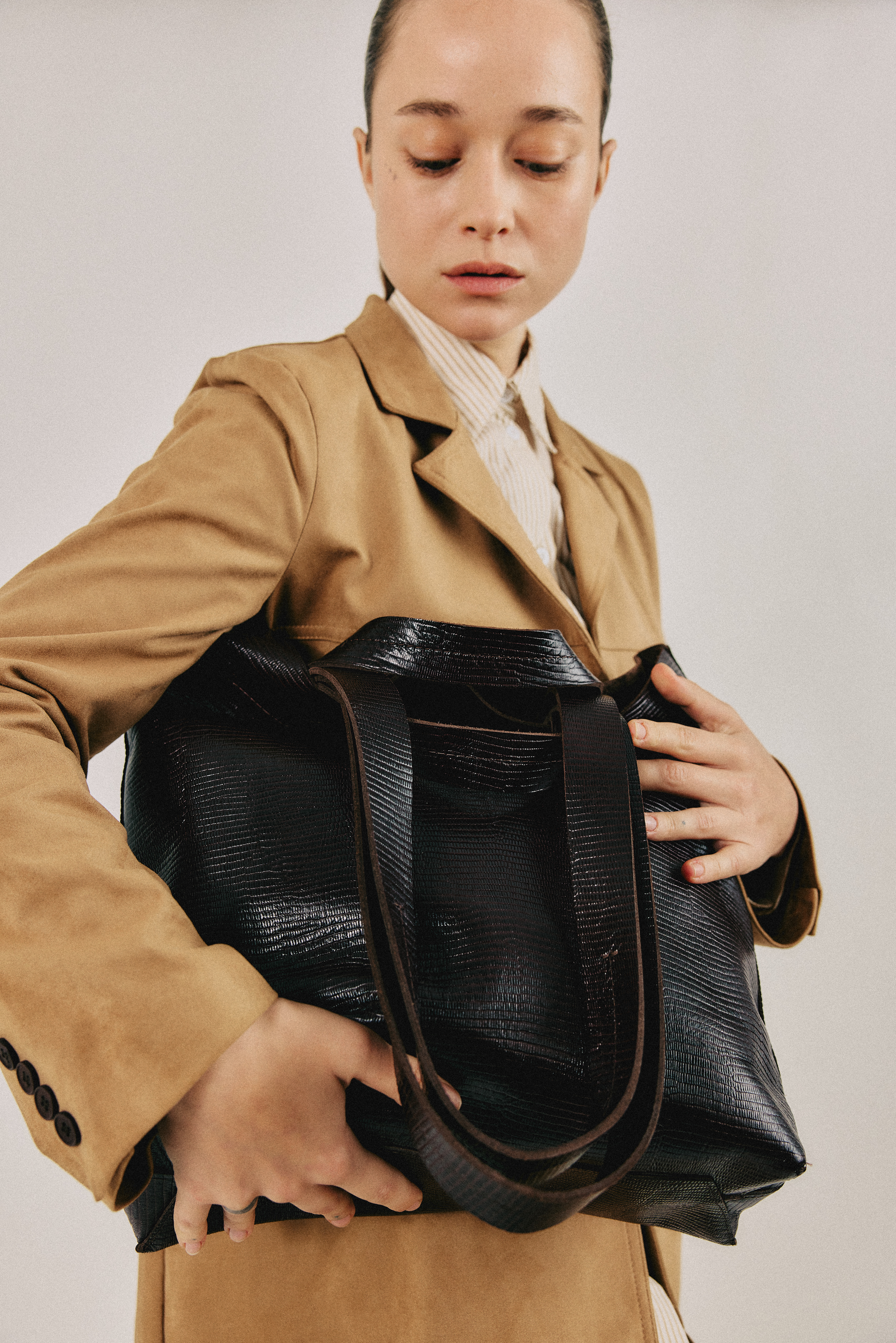 תיק דפנה עוצב בקווים גיאומטריים נקיים, כל תפר וקיפול בתיק משלימים אחד את השני בהרמוניה מוקפדת.