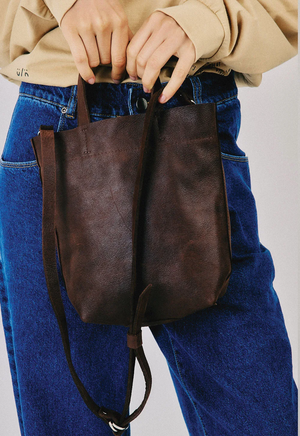 • תיק מינימליסטי הנסגר עם מגנט ובו כיס הנסגר עם רוכסן וכיס נוסף מעור לטלפון הנייד.