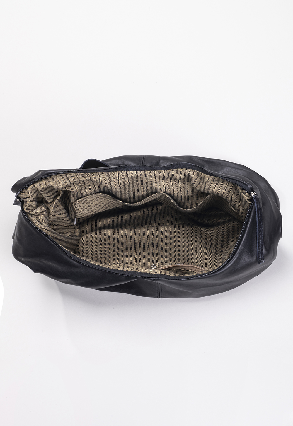 • לנוחיותך, בדופן החיצונית של התיק, כיס נסתר הנסגר ברוכסן לשליפה נוחה של הטלפון הנייד, מפתחות, טישו, משקפיים, כרטיסים וכד'..