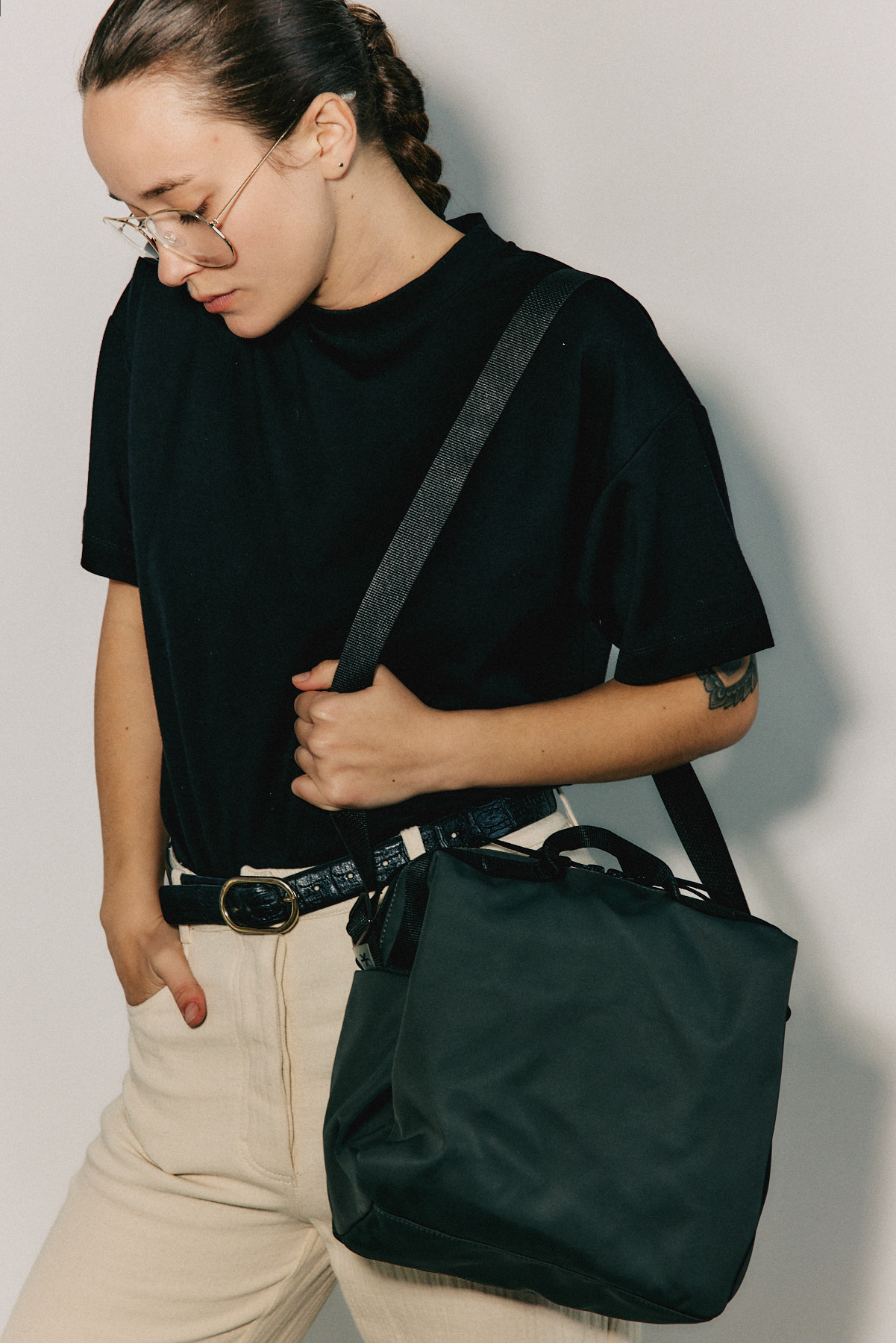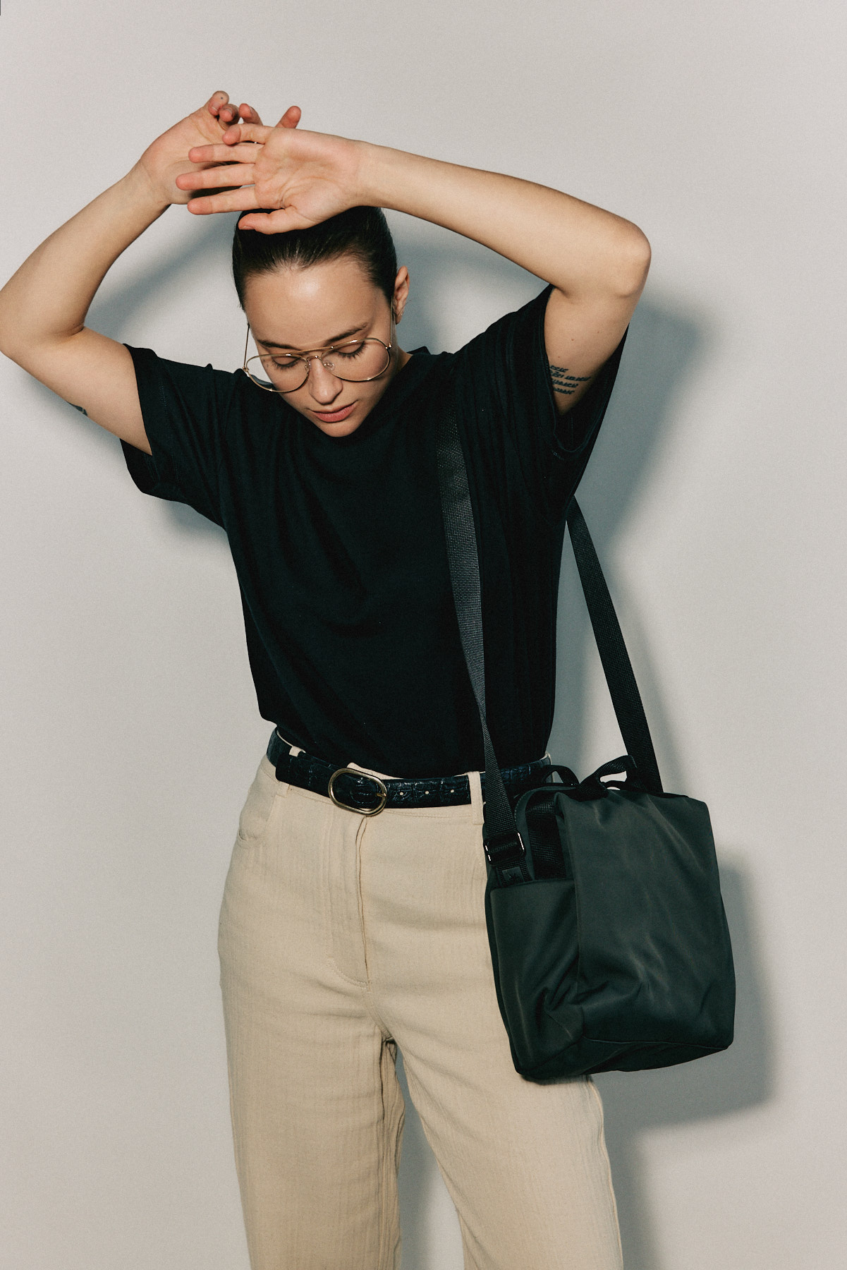 תיק צד נוח בעל רצועה מתכווננת לנשיאה על הכתף ובאלכסון ושתי ידיות קצרות לאחיזה ביד. 2 כיסים חיצוניים על דפנות התיקהתיק מתאים לטבלט/אייפד בגודל קטן מידות- גובה 25 ס"מ רוחב: 25 ס"מ עומק: 8 ס"מ100% טבעוני.