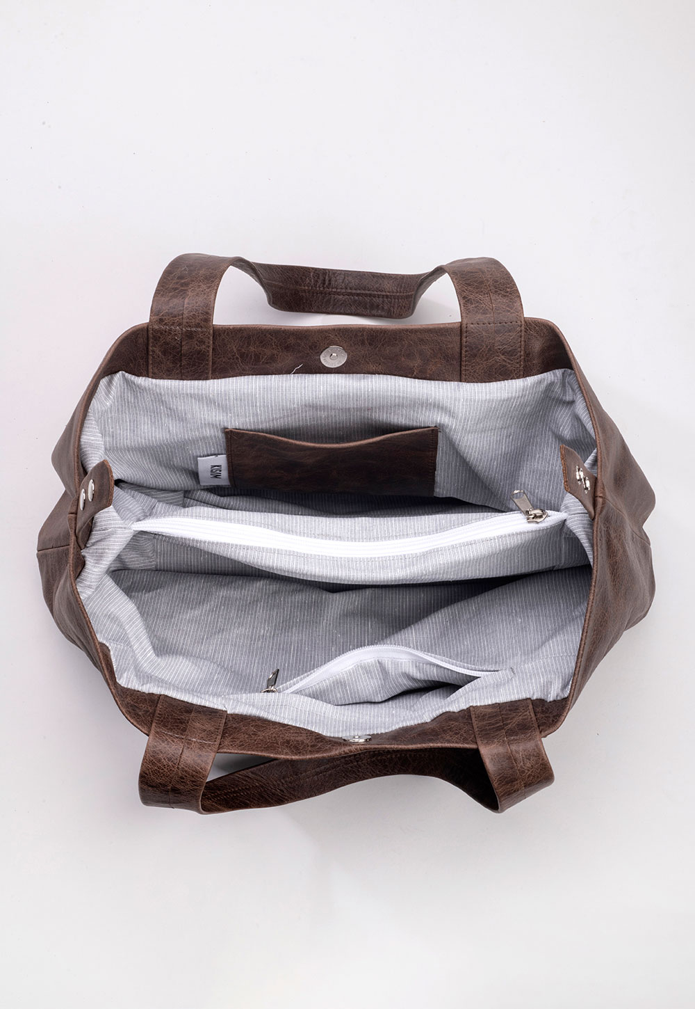 תיק עור מהנחשקים בארץ ובעולם,  עיצוב קלאסי על-זמני ומיוצר בשלושה גדלים . שני תאים גדולים המופרדים בתא מרכזי הנסגר ברוכסן, כיס עור לטלפון נייד וכיס נוסף בסגירת רוכסן. בסיס רחב לתכולה מירבית. רצועות לנשיאה על הכתף, התיק נסגר במגנט.אין התחייבות על הצבע והטקסטורה בבטנה של התיק והיא עשויה להשתנות בהתאם לקולקציה.